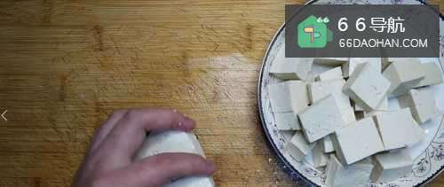 1、先把豆腐切成小块、蒜瓣剁成蒜末。
