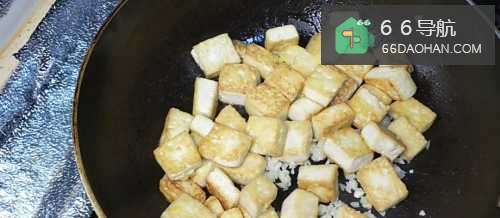 3起锅烧油撒一点食盐,再放入豆腐开始煎,煎至豆腐表面金黄即可。