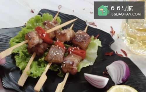 1、首先,我们将食材按照下图处理好;2、接下来,往碗中倒入五花肉、姜片、洋葱片,随后倒入生抽,蚝油、适量辣椒面,盐搅拌均匀,腌制1小时左右;3、这时候,我们用用木签串起五花肉;4、接下来,起锅倒入油5ml,放入肉串大火煎至两面金黄;5、最后,我们关火之后,就可以出锅品尝了。