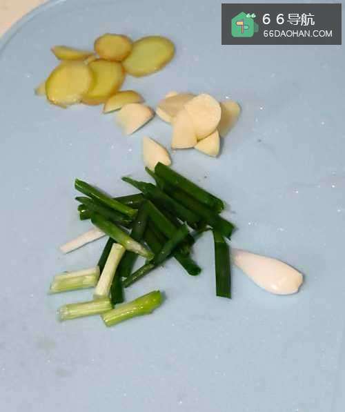 首喝虚哨先把姜切成片葱切成段蒜也切片,备用败季