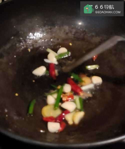 4起锅热油,放入葱姜和蒜以及辣椒,爆炒出香味