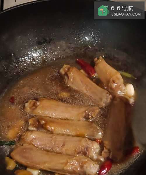 6上色后放入少许盐,并倒入半碗淀粉水大火收汁,边收汁边翻动