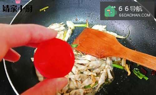 10倒入一小勺盐,一小勺糖,一瓶盖的白酒,快速翻炒均匀。