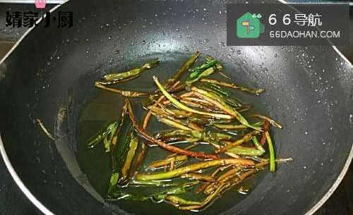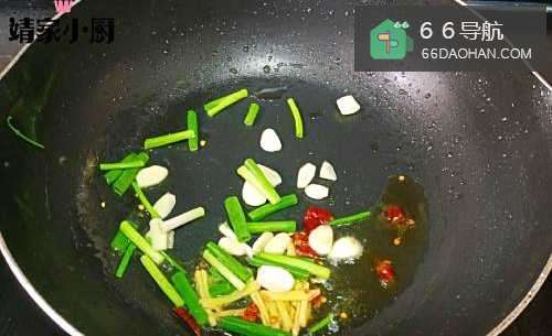8油热后倒入葱,姜,蒜,干辣椒爆香。