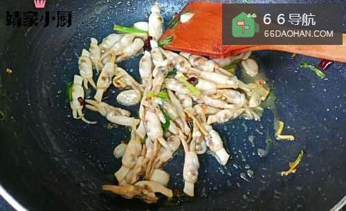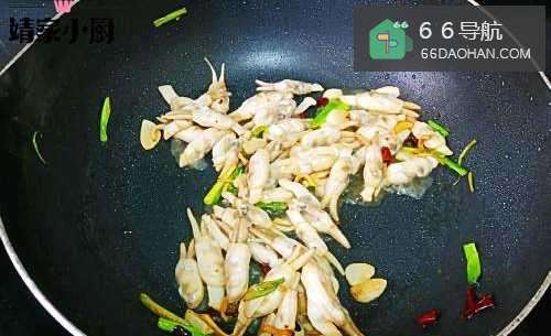 9倒入蛏子快速翻炒入味,本身就是熟的,炒匀即可不要恋战。