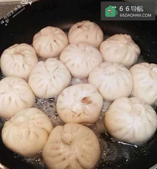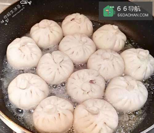 8平底锅倒入少许油,将醒好的包子摆在锅里,小火煎五分钟左右,煎至包子底部微黄。