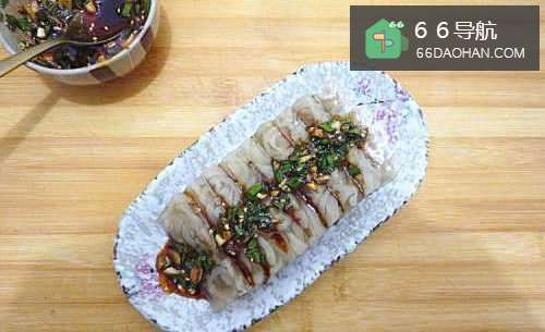 13把蘸料淋在肉皮冻上就可以开吃啦