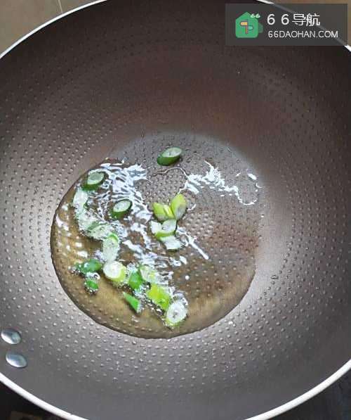 3如图,锅内加入适量色拉油,烧至八成热后放入大葱圈。