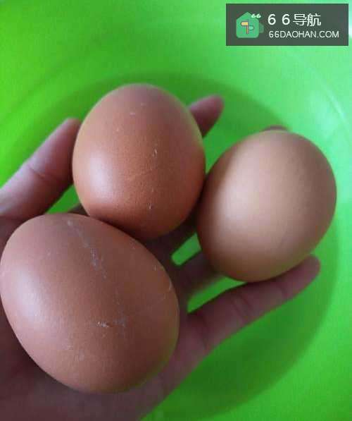 4如图,取来三只新鲜鸡蛋,打入锅中。