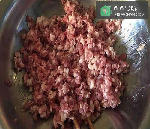 3将肉清洗干净放在砧板,把肉剁碎,待用。