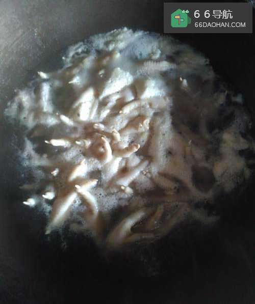 2第二步,把火打开把锅放在炉子上,然后往锅里加水,等锅里的水开始冒烟时,马上把已经清洗干净鸡爪倒入锅里,等水开了19分钟左右就把鸡爪捞起来放在碗里,备用