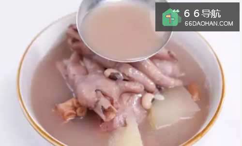 66.后加盐调味,盛入碗中,快来尝尝香喷喷的鸡爪汤吧。