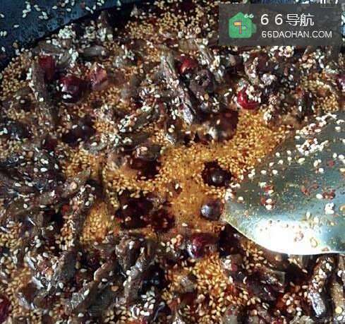 5炒料、油温不能太高小火放入干辣椒截、芝麻、香料、辣椒面炒2分钟。