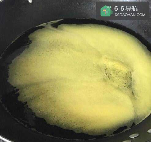 4倒入菜籽油待油泡散尽关火降低油温倒入牛肉条小火炸58分钟。