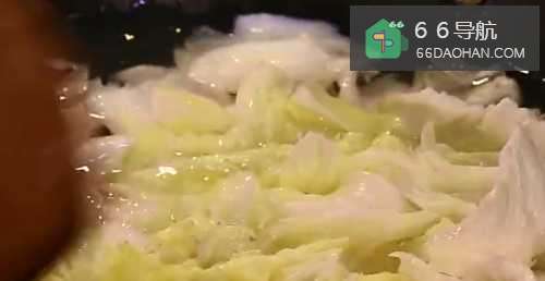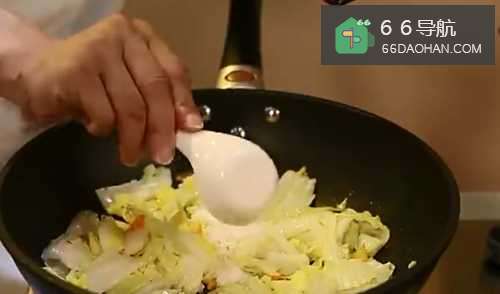 55.放入白菜和盐,白糖味精,鸡粉,料酒老抽米醋翻炒几下。