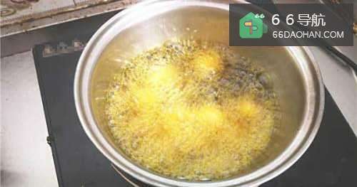 7油温不要太高,最好小火慢炸,炸到红薯丸子表面出现橘红色,然后关火捞出,炸好的丸子甜糯酥脆,非常好吃,但是一次性不要做太多,否则凉了就不酥脆了。