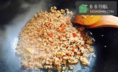 4用榨茄子的油炒肉沫,首先将姜蒜末煸香,然后放入肉沫煸炒,翻炒过程中加入少量酱油和生抽调色,最后肉沫快熟了可以放一勺剁椒。