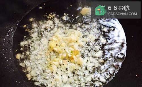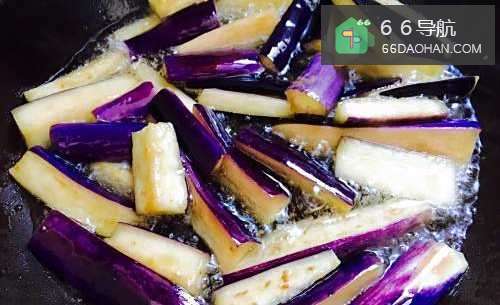 3锅烧热后放色拉油,油差不多9成热的时候放入腌渍好的茄子,把茄子炸软即可捞出来放在盘子里备用。