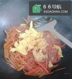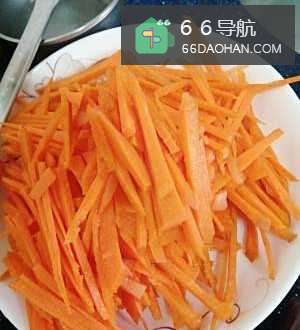 4放入胡萝卜,翻炒几下放入生抽,鸡精,炒至八九分熟。