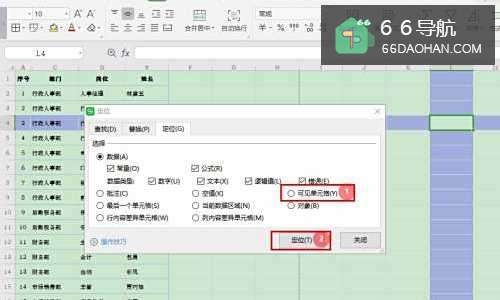 4在定位对话框,勾选【可见单元格】,然后点击【定位】;