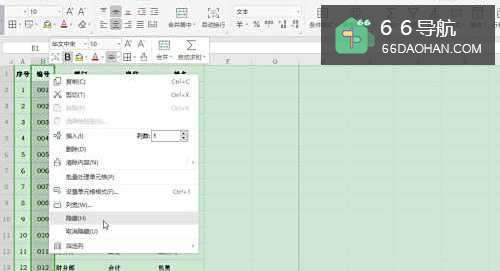 2选择不需要复制的数据【列或行】(B列),点击【鼠标右键】—【隐藏】;