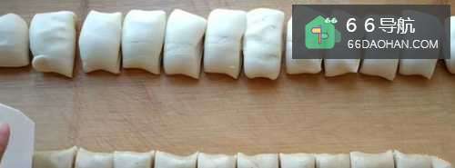 6醒面时间到了不用再揉搓面团,直接搓成长条,然后分成大小均匀的10到12个面剂子。