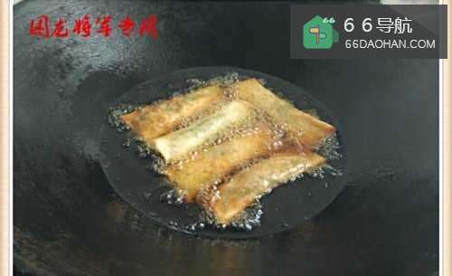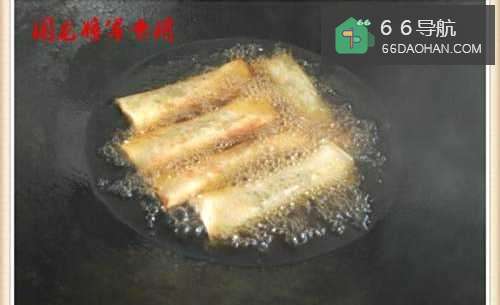 6利用锅中的温度将春卷慢慢的炸透炸好。