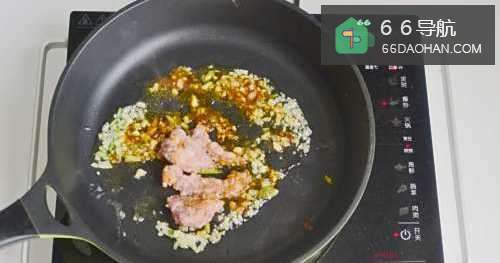 4加入黄豆酱和肉泥依旧小火翻炒均匀