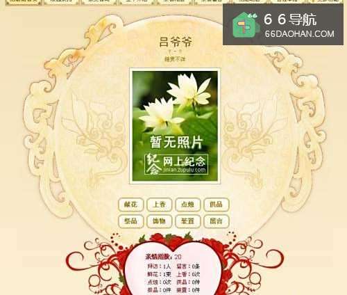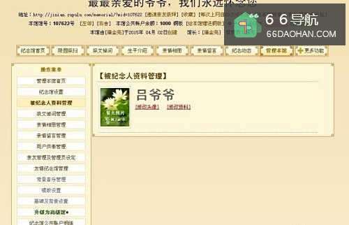 4这里是纪念的首页,在这里我们可以填写祭文,已故人的生平简介以及相册等等。