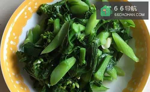 3先将芥菜梗入锅拌炒,让菜梗均匀沾上油