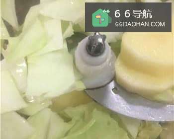 将包菜、土豆放入绞肉机,加适量盐。