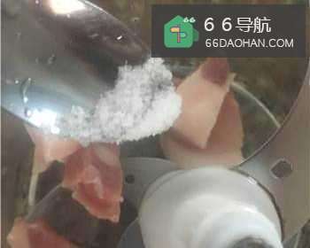 将猪肉放进绞肉机,加适量盐、料酒、耗油,搅烂。