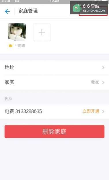 4保存后回到了自动跳转到“生活缴费”页面,现在可以看到新添加的家庭了。