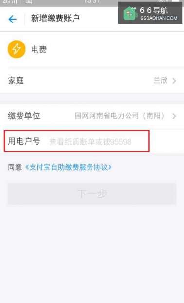 5在弹出的对话框中有个“用电户号”,选择在缴费时给的纸质单据上面的用电户号。