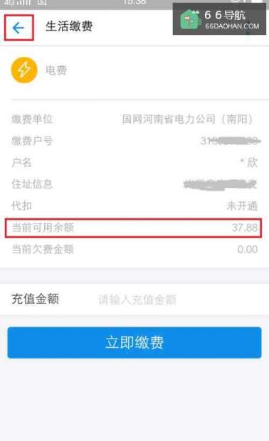 6在弹出的对话框中可以看到可用的余额,如果不多的话可以选择缴费。