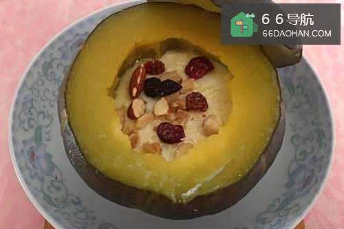 6出锅,放上一点坚果碎,营养均匀又制作简单的南瓜蒸蛋就可以开吃的,超级适合当早饭的~