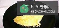 4锅里放油烧热,倒入蛋液煎熟。