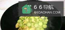 7倒进熟鸡蛋、加白糖、盐炒匀断生。