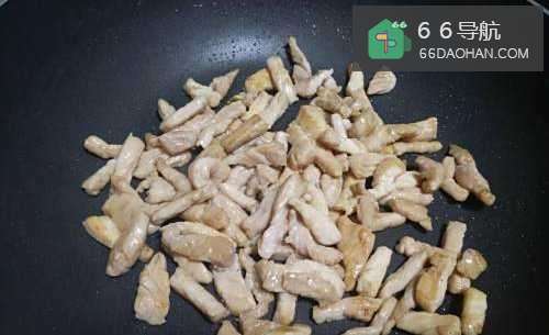 3热锅凉油,把腌好的罪婶猪肉炒一下,可以加点食醋,猪肉变白后取出备用!