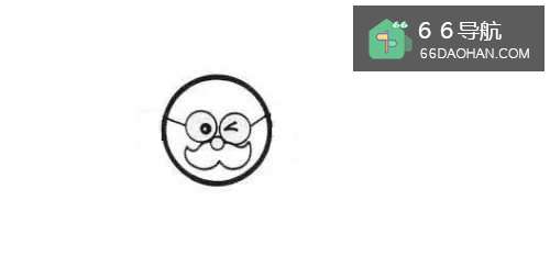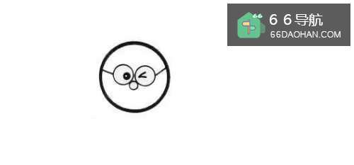 2第2步,在两个小圆中间的下方再画一个小圆,因为眼镜架在这个小圆上,所以这个小圆表示老人的鼻子,