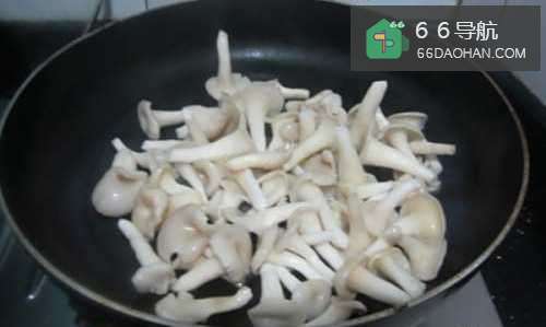 8锅里放些姜片 平菇翻炒下,菌菇较寒湿,这样可以减少湿气