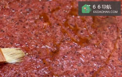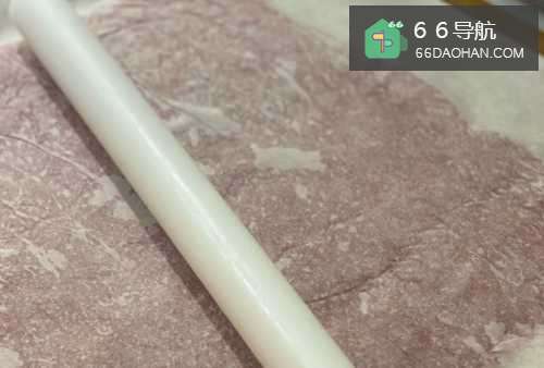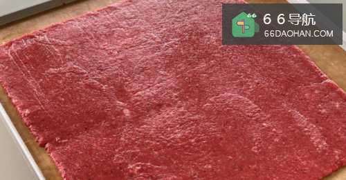 4再铺一层油纸,将肉擀开成长方形或者正方形,薄厚自己喜欢。