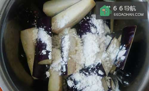 4茄子里倒入两汤匙玉米淀粉抓匀。