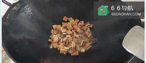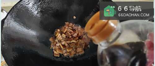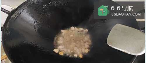 3加入猪肉丁煸炒。