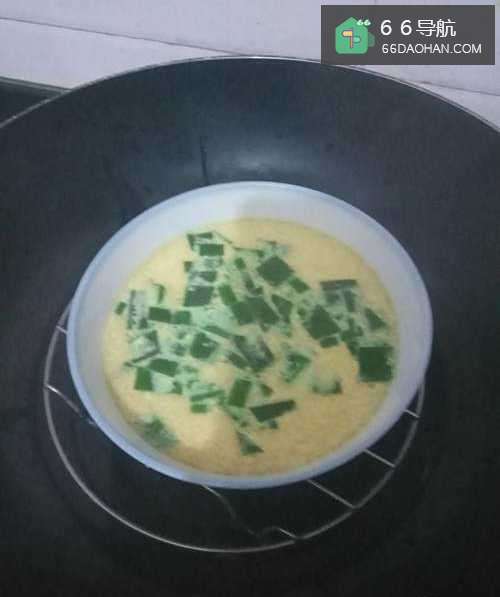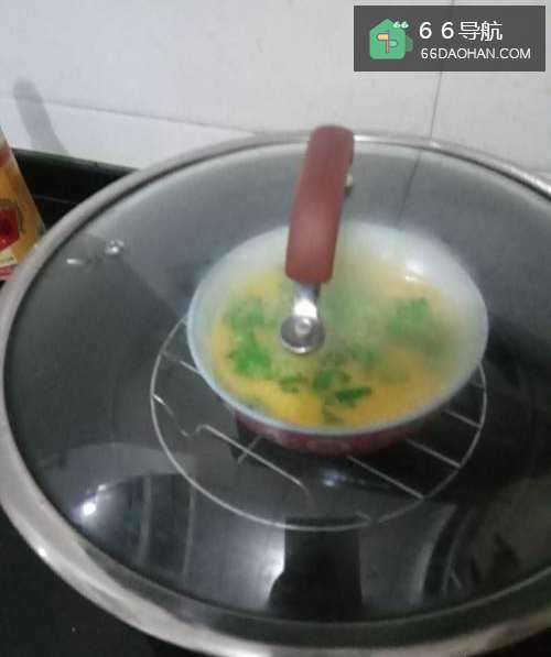 6在蒸锅中放入水,把鸡蛋碗放入其中,大火开始蒸。