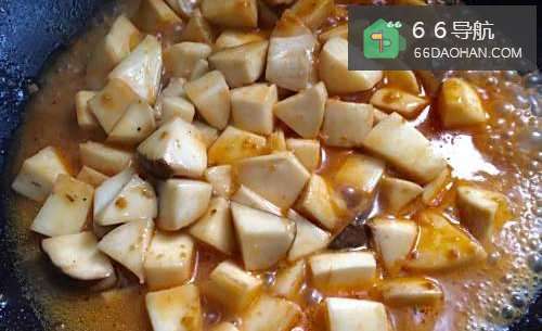 4加入豆瓣酱后继续翻炒均匀后加入适量水,盖上锅盖烧开。