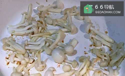 5鸡腿肉静置的时间,用锅中的鸡油炒白玉菇