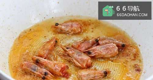 4锅中倒食用油烧热,放入虾头小火煸炒出虾油。