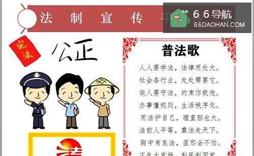 5在【法制宣传手抄报图片】的标题正下方的左侧底部位置处,画出框架及小图案并涂上颜色,写上数字.【法制宣传手抄报图片】已制作完成,如下图所示。