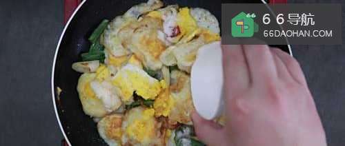 5翻炒一分钟,下入煎好的鹌鹑蛋,翻炒均匀
